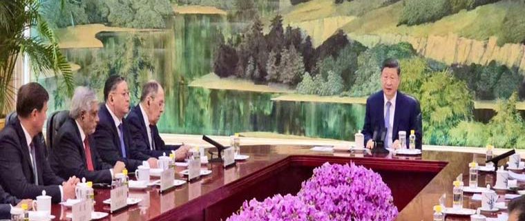 بیجنگ: نائب وزیر اعظم، وزیر خارجہ سینیٹر محمد اسحاق ڈار نے شنگھائی تعاون تنظیم کے رکن ممالک کے وزرائے خارجہ کی چین کے صدر شی جن پنگ سے مشترکہ ملاقات میں پاکستان کی نمائندگی کی۔ چینی صدر نے وفود کے سربراہان کا خیرمقدم کرتے ہوئے شنگھائی تعاون تنظیم کے تحت علاقائی تعاون کی اہمیت کو اجاگر کیا، جو یوریشیائی خطے اور دنیا کی بڑی آبادی پر محیط ایک تنظیم ہے۔ قبل ازیں بیجنگ ایئرپورٹ پر نائب وزیر اعظم و وزیر خارجہ سینیٹر محمد اسحاق ڈارکا استقبال عوامی جمہوریہ چین کی وزارت خارجہ کی ایشیائی امور کے شعبے سے سفیر مس یو ہونگ، چین میں پاکستان کے سفیر خلیل الرحمٰن ہاشمی اور چینی وزارت خارجہ کے اعلیٰ حکام نے کیا۔ سرکاری دورہ چین کے دوران اسحاق ڈار تیانجن میں شنگھائی تعاون تنظیم کے وزرائے خارجہ کی کونسل کے اجلاس میں پاکستانی وفد کی قیادت کر رہے ہیں۔ شنگھائی تعاون تنظیم 2001 میں قائم کی گئی تھی اور اس کے رکن ممالک میں چین، روس، بھارت، پاکستان، ایران، قازقستان، کرغزستان، ازبکستان، تاجکستان اور بیلاروس شامل ہیں۔ تنظیم کا علاقائی انسدادِ دہشت گردی ڈھانچہ سیکیورٹی کے شعبے میں ایک مرکزی ادارہ سمجھا جاتا ہے۔