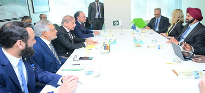 نیو یارک میں وزیراعظم شہباز شریف سے صدر ورلڈ بینک کی ملاقات ہوئی جس میں ورلڈ بینک کے صدر اجے بنگا نے پاکستان کے اصلاحاتی اقدامات کو سراہا۔ وزیراعظم شہباز شریف کی نیویارک میں جنرل اسمبلی اجلاس کے موقع پر ورلڈ بینک کے صدر اجے بنگا سے ہونے والی ملاقات میں نائب وزیراعظم اسحاق ڈار، وزیر خزانہ محمد اورنگزیب اور وزیر اطلاعات عطا تارڑ بھی شریک ہوئے۔ ملاقات میں وزیراعظم نے عالمی بینک کے صدر کو حکومت پاکستان کے جامع اصلاحاتی ایجنڈے سے آگاہ کیا، وزیراعظم نے کورونا اور 2022 کے تباہ کن سیلاب کے دوران پاکستان کے لیے ورلڈ بینک کی دیرینہ حمایت کی تعریف کی۔ وزیراعظم نے آپریشنز کو آسان بنانے اور نجی شعبے میں وسائل کو مزید متحرک کرنے، ورلڈ بینک کو تیزتر اور زیادہ موثر ترقیاتی شراکت دار میں تبدیل کرنے پر اجے بنگا کی قیادت کی تعریف کی۔ شہباز شریف نے ورلڈ بینک کے نئے کنٹری پارٹنرشپ فریم ورک (2026-2035) کی بھی تعریف کی جبکہ صدر ورلڈ بینک اجے بنگا نے پاکستان کے اصلاحاتی اقدامات کو سراہا۔