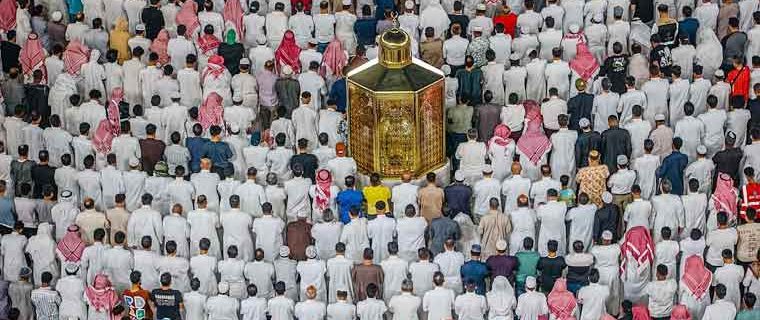 ریاض: (ویب ڈیسک) سعودی عرب اور خلیجی ممالک سمیت دنیا بھر کے کئی ممالک میں آج عید الفطر مذہبی جوش و جذبے کے ساتھ منائی جا رہی ہے۔ نماز عیدالفطر کے سب سے بڑے اجتماعات مسجد الحرام اور مسجد نبویﷺ میں ہوں گے، جہاں لاکھوں فرزندان توحید نماز عید ادا کریں گے، خادم حرمین شریفین شاہ سلمان بن عبدالعزیز نے دنیا بھر کے مسلمانوں کو عیدالفطر کی مبارکباد دی۔ شاہ سلمان نے عالمی امن و استحکام کیلئے کوششیں جاری رکھنے کے عزم کا بھی اعادہ کیا، اور امت مسلمہ کیلئے امن، سلامتی اور استحکام کی دعا کی۔ ادھر ترکیہ، لبنان، یمن، فلسطین اور عراق میں بھی آج عید منائی جا رہی ہے، آسٹریلیا میں بھی آج عید ہے، آسٹریلوی وزیراعظم انتھونی البانیسی سڈنی کی مسجد گئے جہاں انہوں نے مسلمانوں کے تہوار میں شریک ہوکر انہیں مبارکباد دی۔ امریکا میں بھی عیدالفطر کا چاند نظر آگیا، جہاں عیدالفطر آج منائی جائے گی، برطانیہ سمیت یورپ بھر میں مسلم کمیونٹی کی بڑی تعداد نے آج عید منانے کا اعلان کر دیا۔